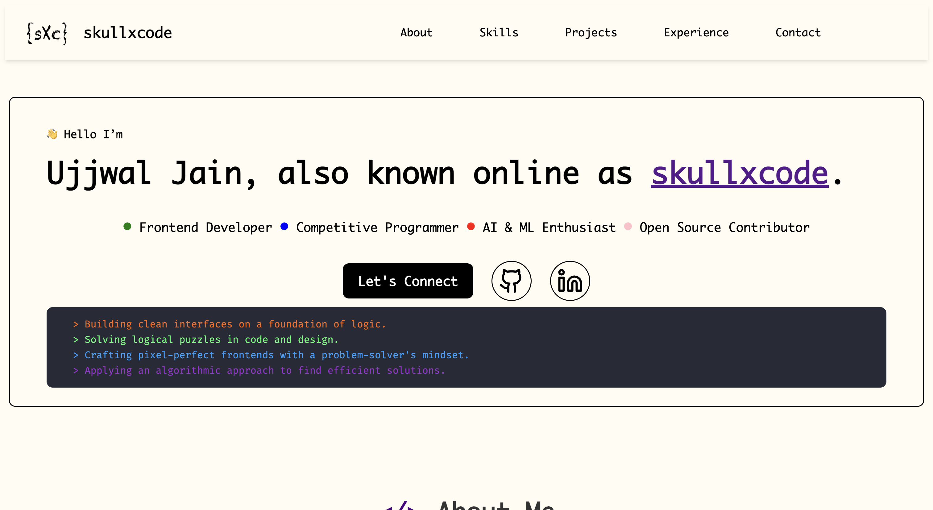 My developer portfolio: code and creativity.